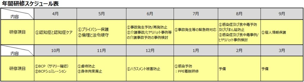 【虐待防止検討委員会/身体拘束適正化検討委員会/感染委員会/リスク委員会/BCP委員会/マニュアル記録委員会/教育委員会】